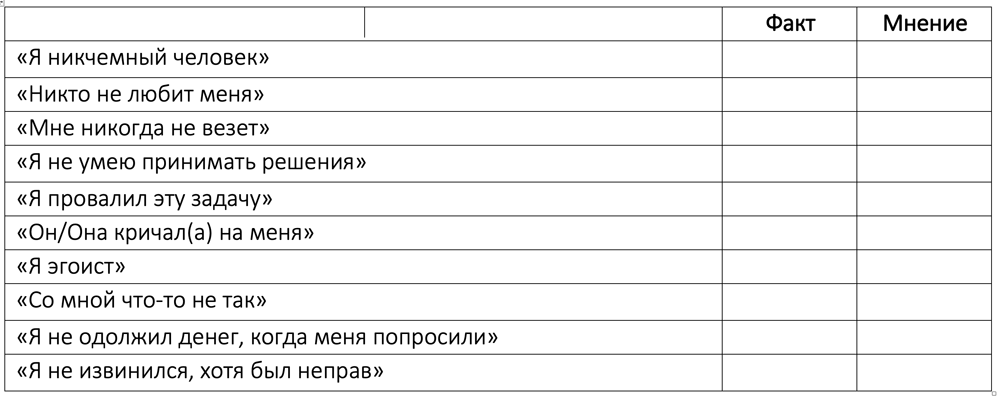 2. Попробуйте выписать эти ограничивающие убеждения в два столбца, как в примере выше.