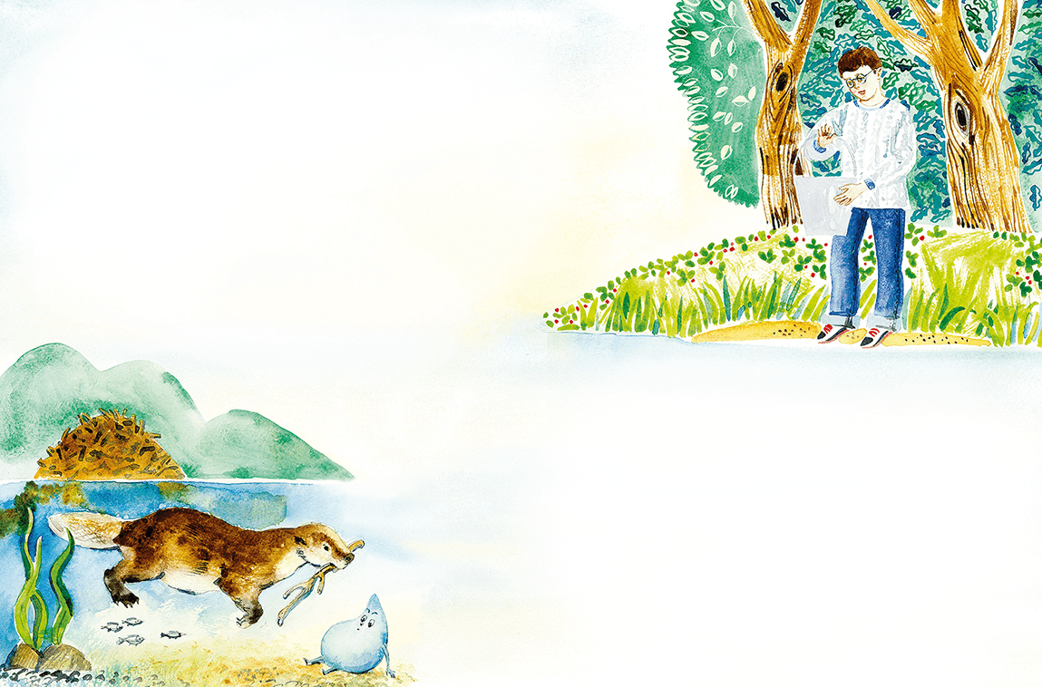 Мимо проплывал большой красивый зверь с густой коричневой шерстью, похожим на лопату хвостом и с веткой в крепких зубах. Это был Бобр.