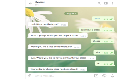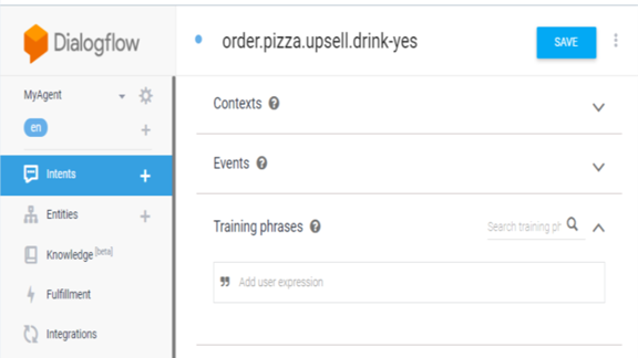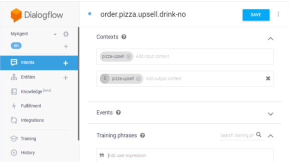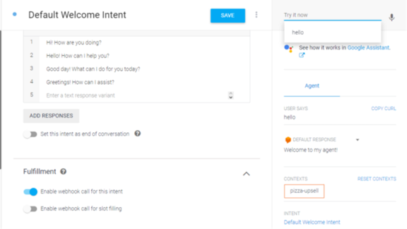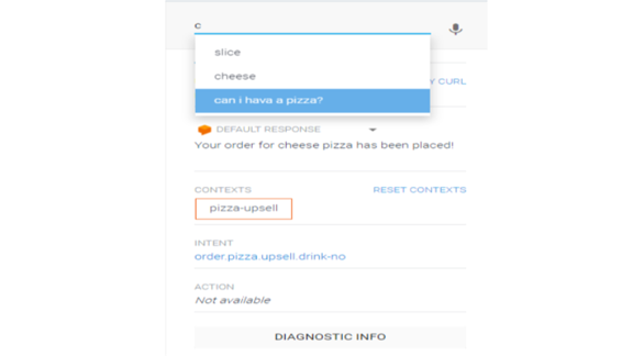 Таким образом, при повторном заказе, когда пользователь закажет пиццу, агент распознает намерение, и активирует этот контекст.
