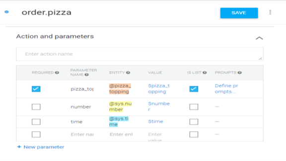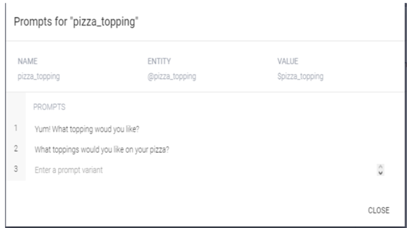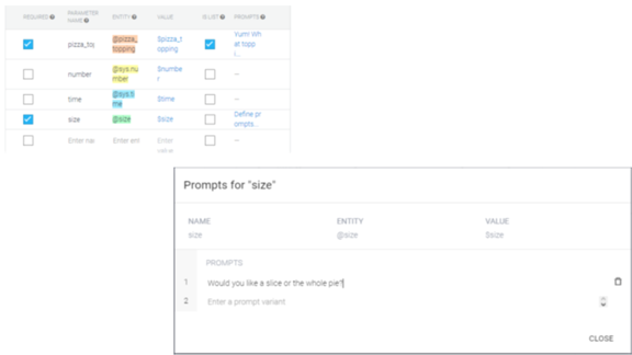 Поэтому в разделе действия и параметры отметим параметр pizza_topping и нажмем Define prompts.