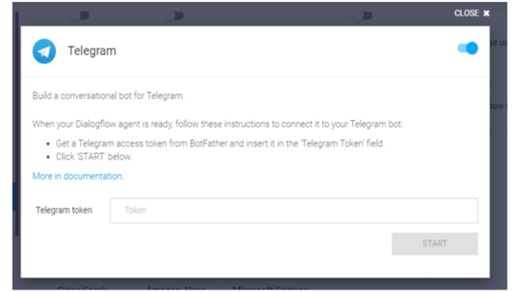 Опция интеграция Telegram позволяет легко создавать ботов Telegram с пониманием естественного языка на основе технологии Dialogflow.