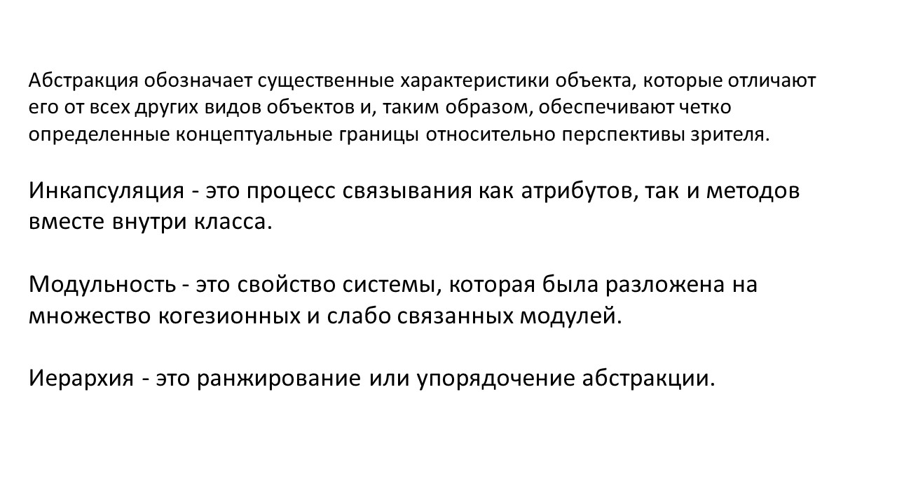 Абстракция означает сосредоточиться на существенных особенностях элемента или объекта, игнорируя его посторонние или случайные свойства.