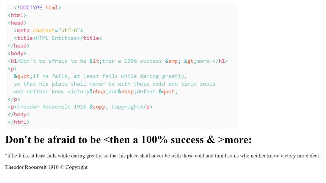 Еще одна полезная сущность HTML, которая очень часто используется, это , что означает неразрывный пробел. При этом слова с неразрывным пробелом всегда будут на одной строке, то есть браузером эти слова будут переноситься на новую строку вместе.