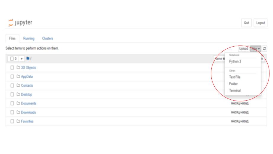 Чтобы создать новый ноутбук, нужно нажать на кнопку New во вкладке «Файлы».