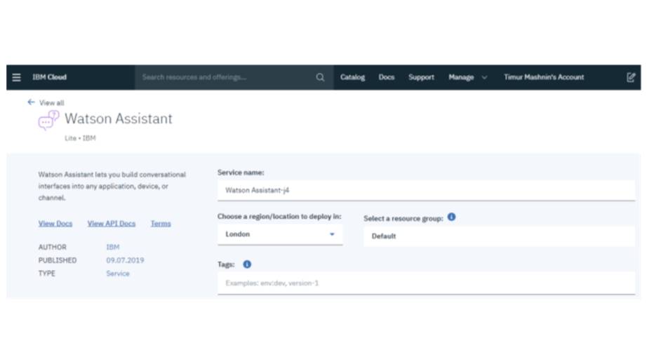 Для создания чат-бота, здесь мы будем использовать службу Watson Assistant, размещенную на платформе IBM Cloud.
