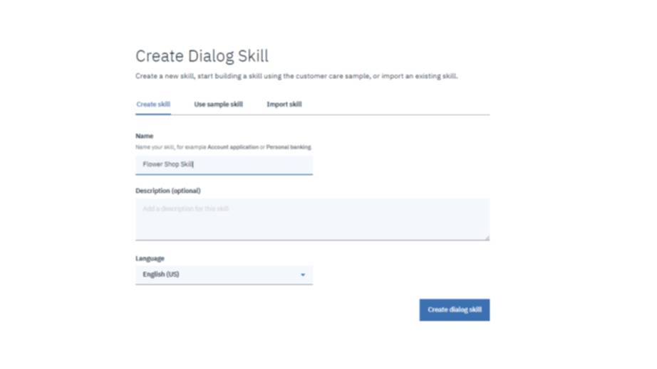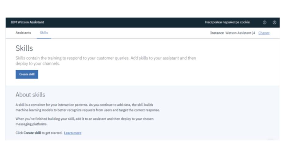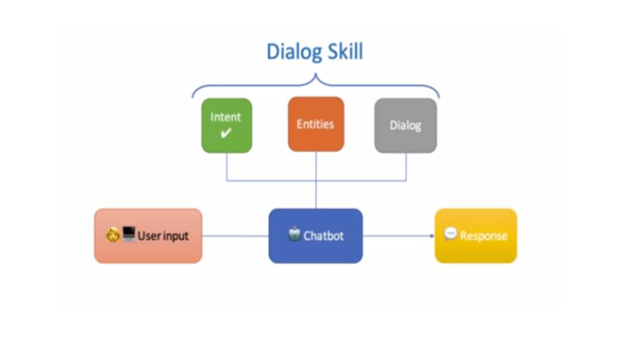И когда вы создаете чат-бота в Watson Assistant, первое, что вы делаете, это создаете Навык диалога dialog Skill, который будет содержать эти три компонента.
