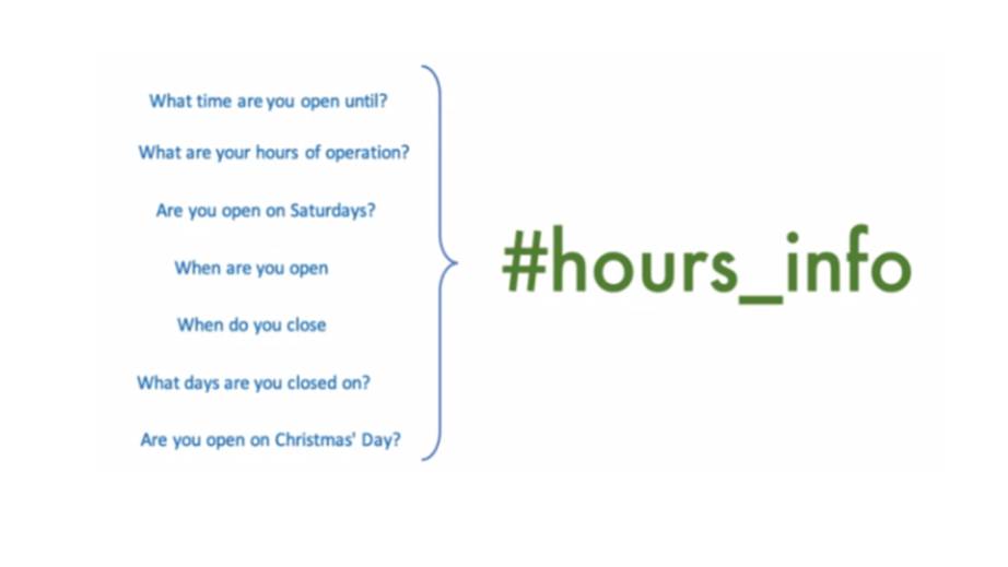 Пользователи могут захотеть узнать о часах работы, и мы могли бы определить намерение #hours_info.