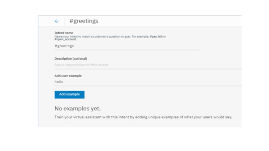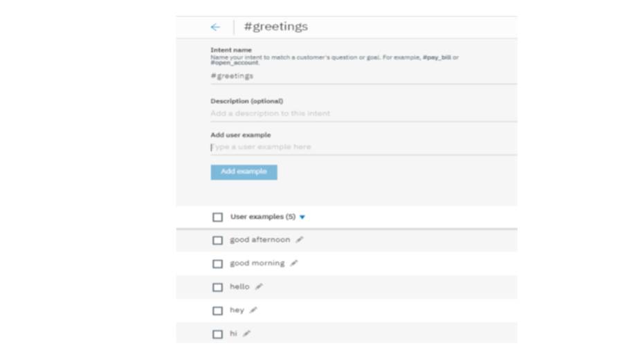 Здесь вам будет предложено создать несколько пользовательских примеров, чтобы обучить Уотсона приветствию.