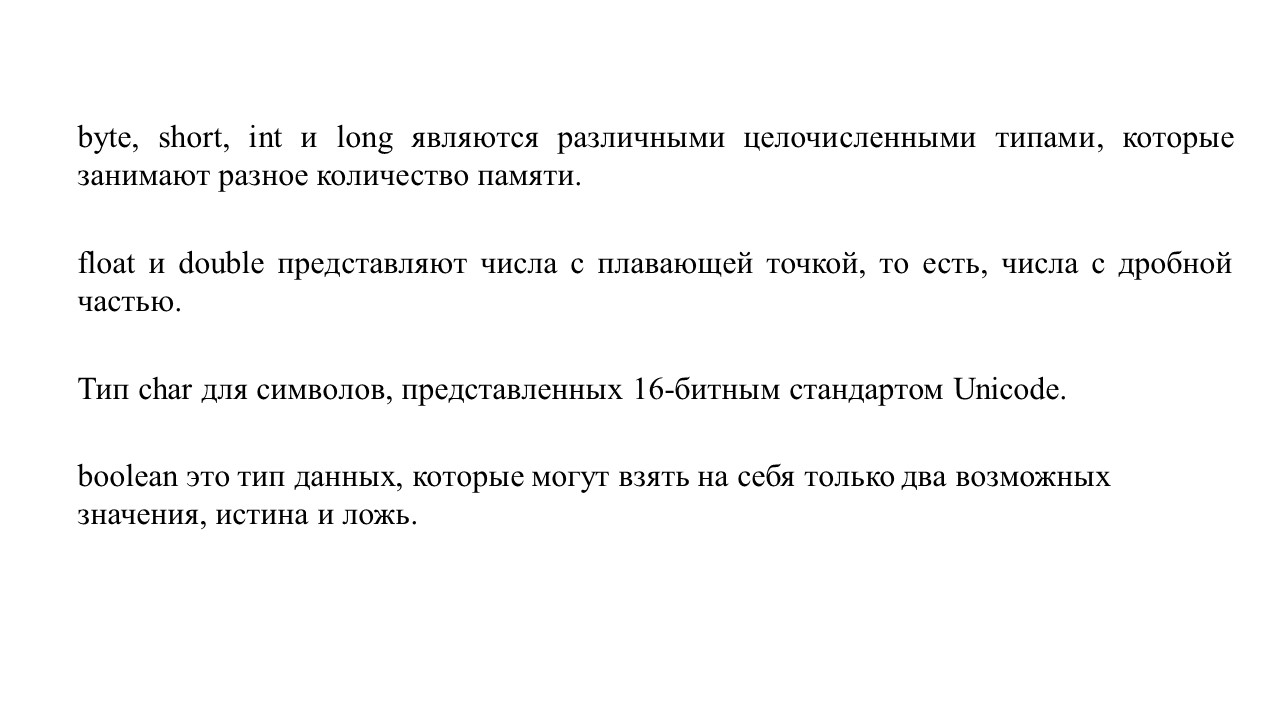 byte, short, int и long являются различными целочисленными типами, которые занимают разное количество памяти.