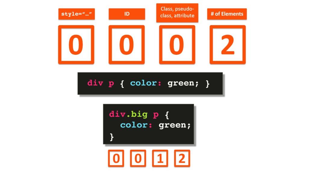 И есть довольно простой метод, который позволяет выяснить, какая комбинация селекторов является более специфичной, чем другие.
