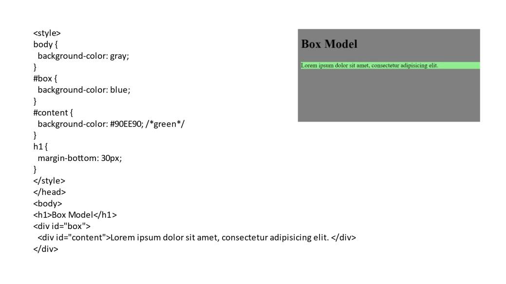 Здесь есть тег h1 и тег div с идентификатором box, а внутри этого div есть еще один div с идентификатором content и текстом.