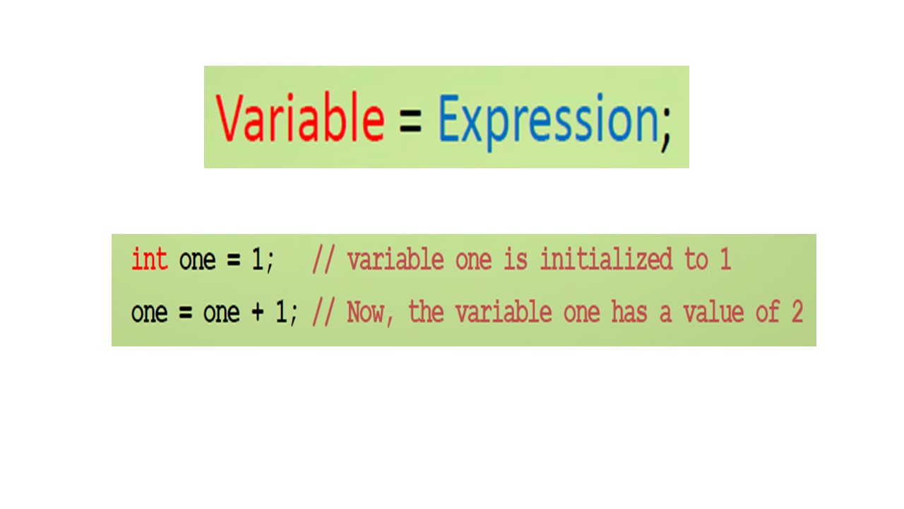 Смысл или семантика оператора присваивания – это присвоить значение, вычисленное выражением на правой стороне, переменной на левой стороне, и исходное значение, хранимое в переменной, будет заменено.