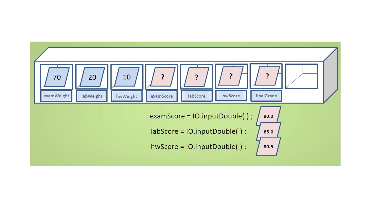 Аналогично, значение 85,0 вводится для labScore, и 80,5 вводится для hwScore.