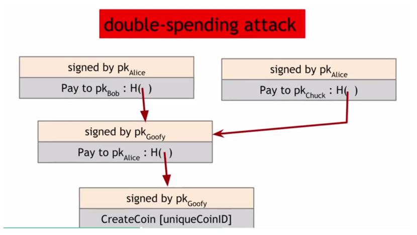 GoofyCoin не решает проблему двойного расходования, и поэтому она не защищена.