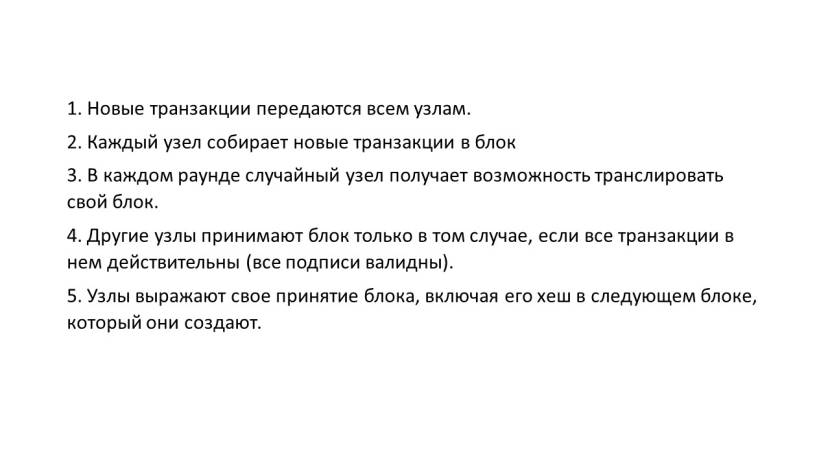 Таким образом, упрощенный консенсусный алгоритм биткойна состоит в следующем.