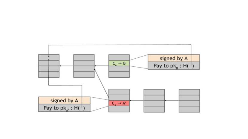 Теперь, когда Алиса предложит следующий блок, она может предложить блок, который игнорирует блок, содержащий платеж Бобу, и вместо этого содержит указатель на предыдущий ему блок.