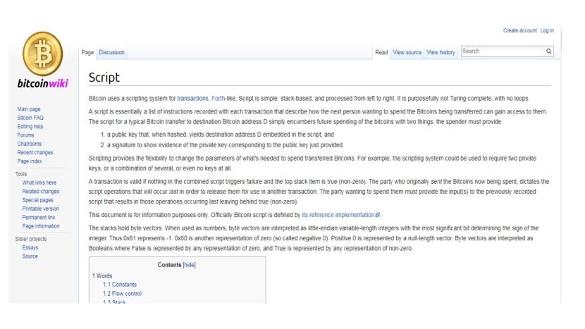 Bitcoin язык скриптов был создан специально для биткойнов и называется просто «Скрипт».