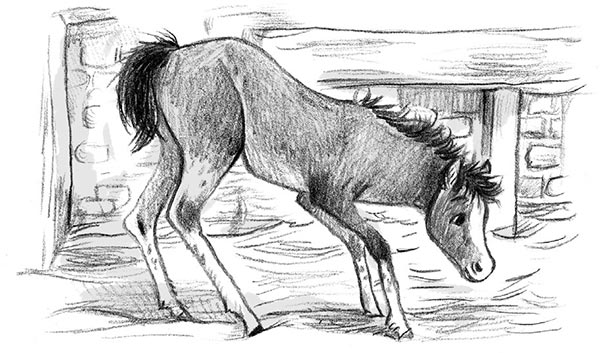– Мам! – закричала она. – Папа везёт пони! И у неё будет жеребёнок! Нужно положить сено в денник!