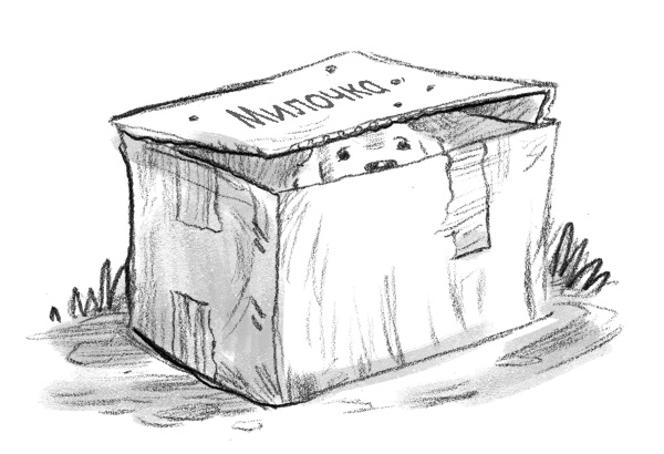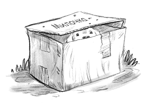 Девочки попрощались во дворе, и Ева поспешила домой, чтобы скорее позавтракать и пойти гулять с собаками. Она бросила взгляд на переулок и заметила видавшую виды картонную коробку, которую кто-то оставил возле калитки. Коробка была заклеена скотчем. Сверху имелись небольшие отверстия, а также надпись, сделанная чёрным маркером.