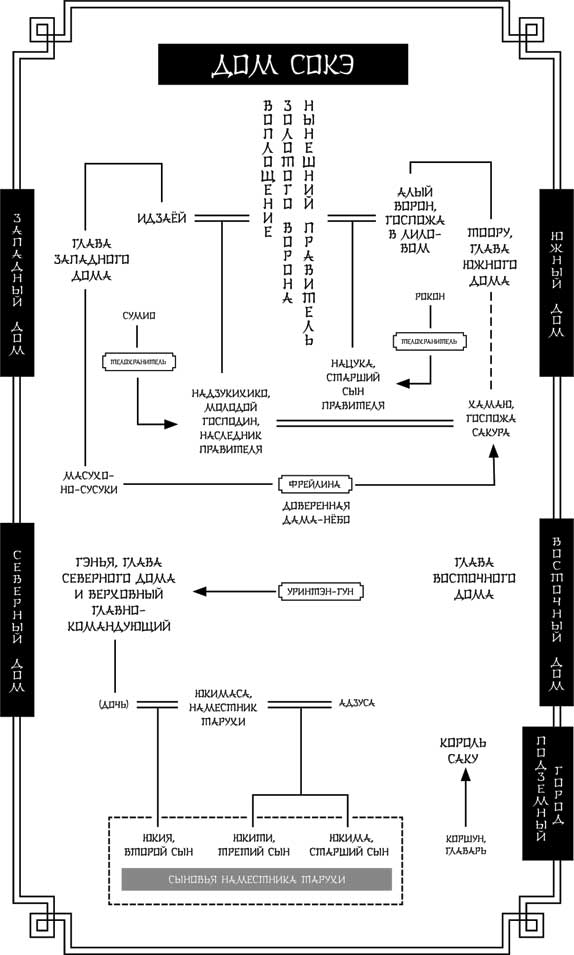 Мир, по преданию созданный горным божеством Ямагами-сама. Управляет этой страной род Сокэ, его старейшина зовется Золотым Вороном. А власть над землями в разных ее частях поделили между собой четыре аристократических семейства – Восточный, Западный, Южный и Северный дома.