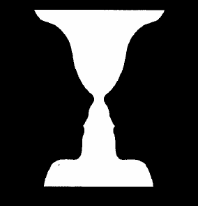 Рассмотрим следующую историю. Джону, работавшему на автомобильном заводе в Соединенных Штатах, не нравился его начальник. Некоторое время он терпел эту ситуацию, потом решил обратиться в кадровое агентство, чтобы найти аналогичную должность на другом предприятии. Он оставил там свою заявку. Однажды вечером, когда Джон пришел домой, жена сказала ему, что она готовится к занятиям по психологии. У нее в книге он увидел двусмысленный рисунок, подобный приведенному внизу (изображение «вазы Рубина». Источник: Gleitman Н. Psychology. New York, Norton, 1986 [2nd ed.], p. 182).