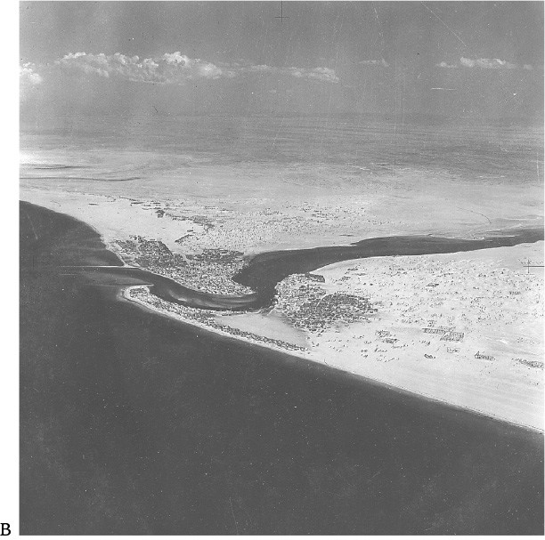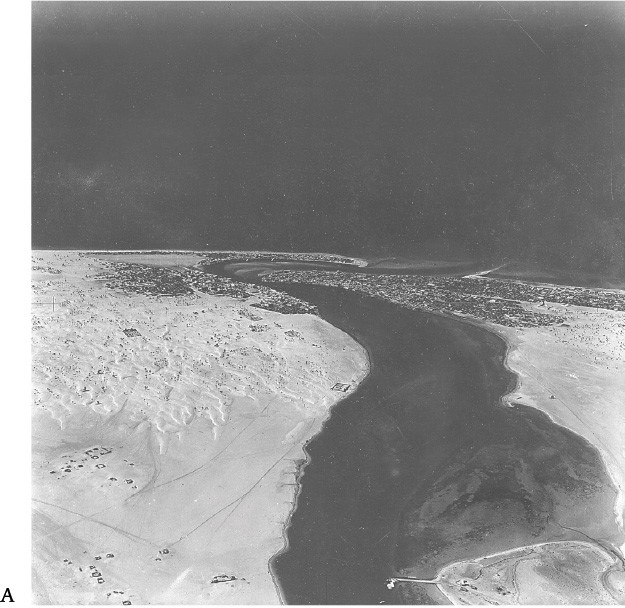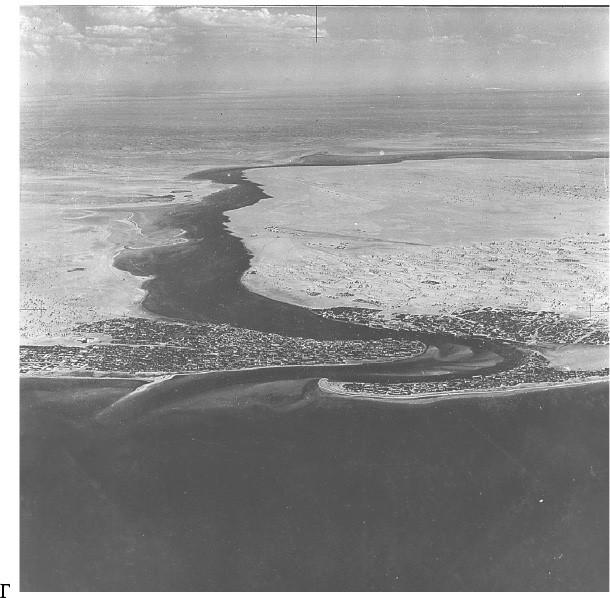 Аэрофотоснимки, показывают, как извилистая форма рукава скрывала торговлю от обзора с берега. 1944 г.