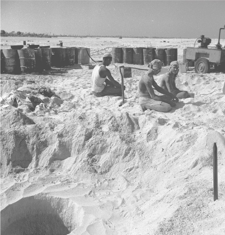 Рабочие у колодца. 1959 г. Питьевую воду брали за пределами города, а затем продавали жителям Дубая в бочках из-под нефти.