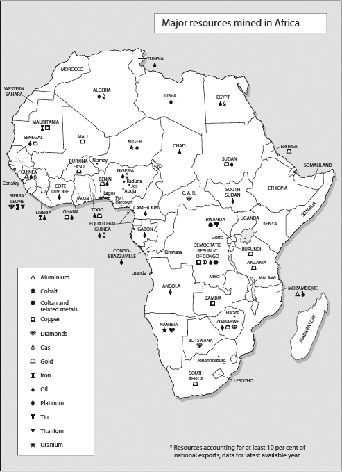 Africa accounts for 13 per cent of the world’s population and just 2 per cent of its cumulative gross domestic product, but it is the repository of 15 per cent of the planet’s crude oil reserves, 40 per cent of its gold and 80 per cent of its platinum – and that is probably an underestimate, given that the continent has been less thoroughly prospected than others.8 The richest diamond mines are in Africa, as are significant deposits of uranium, copper, iron ore, bauxite (the ore used to make aluminium), and practically every other fruit of volcanic geology. By one calculation Africa holds about a third of the world’s hydrocarbon and mineral resources.9