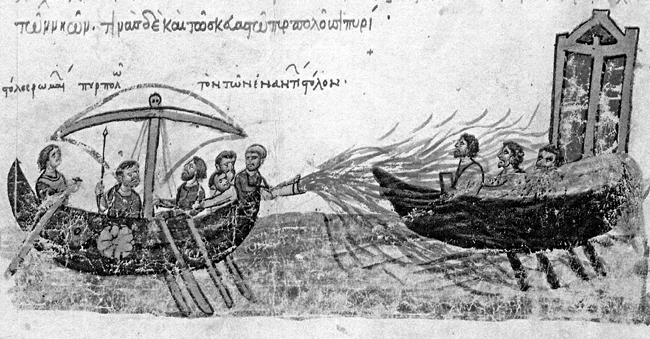 Средневековое оружие, известное как «греческий огонь», которое загоралось даже будучи мокрым, появилось благодаря тому, что любопытные исследователи изучили свойства природных материалов.