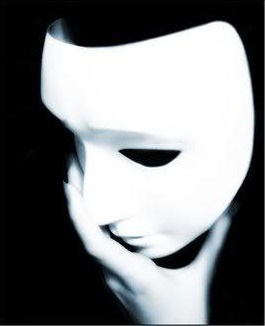 На ней был изображен невысокий человек, одетый полностью в черное: пальто без карманов и брюки без стрелок. Вместо лица у него была белая маска, на которой не отражались никакие эмоции: широкие разрезы для глаз, узкое отверстие прямоугольной формы для рта и небольшой выступ, напоминающий по форме нос. Она занимала всю поверхность головы, оставляя место только волосам.