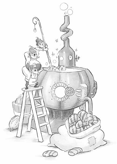 – Терпение, друг мой, – мистер Трандл весь сиял от предвкушения. – Они копают, коп-коп-коп-копают, вскапывают снежные поля, пробиваясь сквозь ледяную корку толщиной с наш дом и прозрачную, как стекло! Но ищут они не золото и не бриллианты. Игрушки – вот их цель! Видишь ли, рождественские бобы в снегу прорастают, и их волшебные корни – громадные, извилистые, ужасно длинные – прорезают лед. Именно там, во льду, на замороженных корнях появляются игрушки для всех детей на свете. Они получаются из рождественских бобов с волшебной елки, которая внимательно слушала, что написано в письмах Санта-Клаусу, и поэтому знает, что и кому подарить! – завершил мистер Трандл.