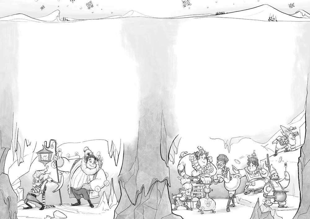 В этот морозный декабрьский день во льдах под снежными полями Северного полюса трудились восемь эльфов. Их звали Соня, Конопатый, Скороход, Сластена, Звездочетка, Щекастик, Снежок и Брокколи. Они были очень маленькие, как и рассказывал мистер Трандл, – не выше твоих колен – и наряды у них были самые необыкновенные. У кого платье из чайной чашки, у кого меховое пальто, увешанное электрическими лампочками, – то еще зрелище!