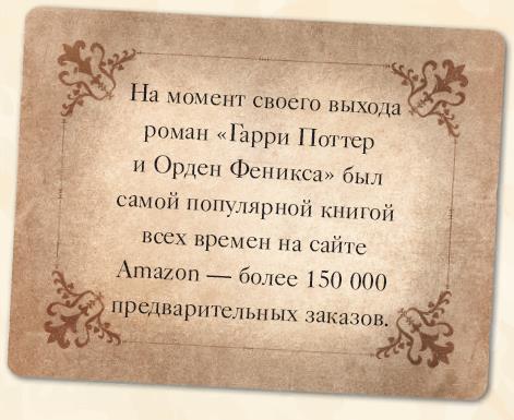 Несмотря на то что пятый том «Гарри Поттера» является самой длинной книгой в серии – более 1000 страниц (в английском оригинале), его экранизация – самая короткая: продолжительность фильма «Гарри Поттер и Орден Феникса» составляет 138 минут.