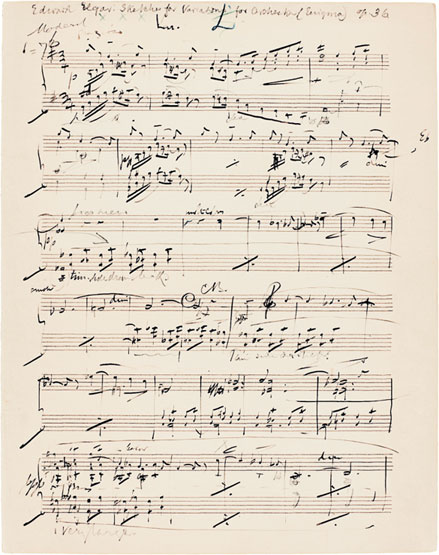Черновик «Энигма-вариаций» Эдварда Элгара. Композитор Ханс Циммер переработал их для своего саундтрека к «Дюнкерку» (2017).