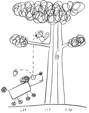 And then the squirrel dropped an acorn on Poo-Poo’s head.