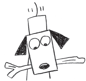Anyway, Stick Dog is not called Stick Dog because he likes sticks. He’s called Stick Dog because I don’t know how to draw. I mean, I do know how to draw – I just don’t know how to draw very well. You know how to draw stick people, right? A circle for a head, add a couple of lines for arms and legs, and – SHAZAM! – you’ve got a stick person. I do the same thing for dogs. And that’s how our main character got his name.