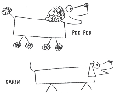 Stick Dog has four friends who stop by his empty pipe on a regular basis. There’s a poodle named Poo-Poo. Now, it’s important to know that Poo-Poo is not named after, you know, going to the bathroom. He’s named after his own name. Get it? POO-dle.
