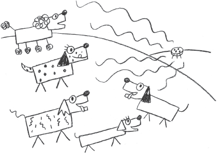 “Hey, you guys,” said Stick Dog. “Let’s keep going and track down those hamburgers. I’m starting to get pretty hungry.”