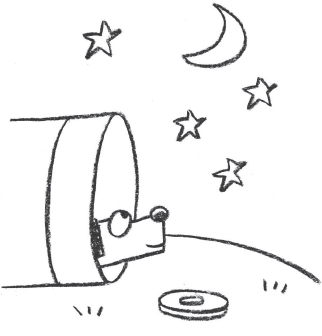 He can hear crickets and toads at night. And when the sky is clear, Stick Dog leans his head out of the end of his pipe and stares at the stars and the moon. On nights like that, lying there on his cushion with a Frisbee in his mouth, Stick Dog knows that he’s got it pretty darn good.