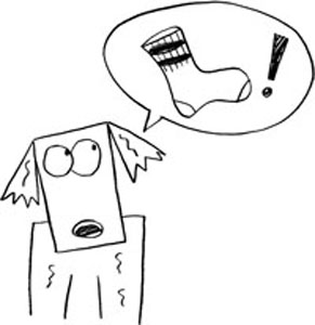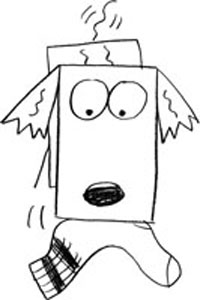 Mutt didn’t pay much attention at all. He was twisting his tongue around inside his mouth trying to get the sock strings dislodged from between his teeth.