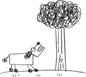 Poo-Poo jerked around for a moment, surprised out of his squirrel-stalking trance. He snapped his head toward Stick Dog and then yanked it back around to stare up into the tree again. “Yes, Stick Dog?”