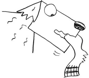 Halfway through the forest, Poo-Poo skidded to a halt. He snapped his head left and right, up and down. He sniffed continuously as he jerked his head all around. The other dogs had all slowed and stopped to watch this display.