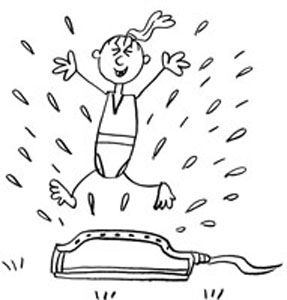 You see, in the fourth yard, three small humans were running in, out, and around a water sprinkler.
