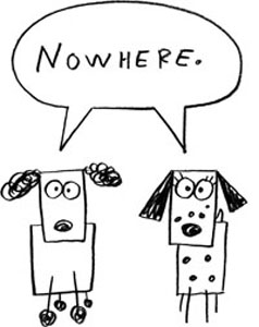 Stripes looked at Poo-Poo. Poo-Poo looked at Stripes. They both looked at Stick Dog, shrugged their shoulders, and answered together, “Nowhere.”