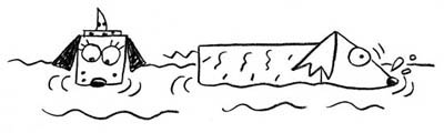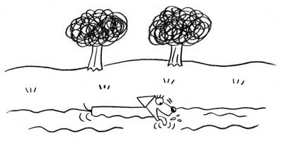 Mutt had risen, soaking wet, from the water and began to walk to the shore. “How’s that?”
