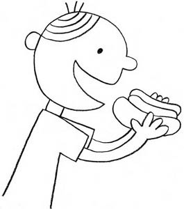 A boy came up to Peter and asked him something. They talked for a minute, and the boy gave him a dollar. And Peter gave him something back. The boy sniffed at it and then took a great big bite. And smiled.