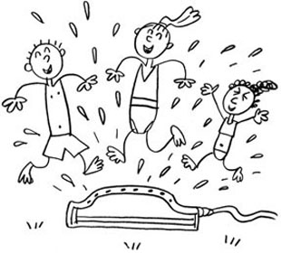 “I don’t think that’s true,” said Stripes, who had another idea altogether. “I think the water is actually attacking them. Just look at it! It’s shooting all over the place trying to get them. And those little humans seem awfully frightened by it. They keep running up to it and then running away from it over and over again. Yep, it’s definitely a water-attacking machine of some sort.”