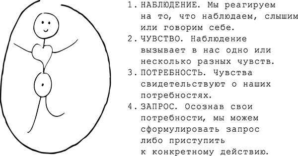 Следовательно, если мы нейтрально озвучиваем свое наблюдение, это не означает, что мы подавляем чувства. Это означает, что мы приступаем к разговору в той манере, которая не пренебрегает реальностью и ее видением собеседником (оно может отличаться от нашего видения!) и которая дает нам возможность со всей силой передать собеседнику наше чувство, не осуждая его и не проявляя агрессии.