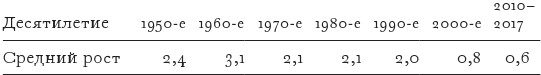 Во второй половине двадцатого века экономический рост в США составлял примерно 2 % в год. Шестидесятые годы выделяются как период более быстрого, чем в среднем, роста. Однако за последние восемнадцать лет темпы роста оказались существенно ниже.