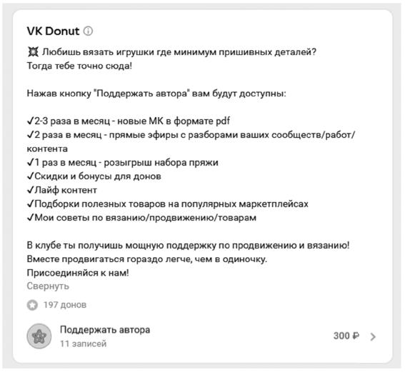 Кстати, Анастасия уже в первый же месяц работы над обновлением своего сообщества, в том числе и по лайфхакам, собранным в этой книге, начала получать дополнительный доход от донов сообщества около 60 000 рублей. Как? Просто публикуя платный контент для своих подписчиков.